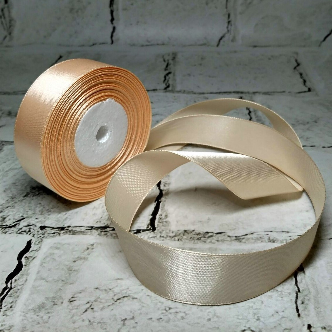 Одностороння атласна стрічка, ширина - 2.5 см, моток - 23 метри.