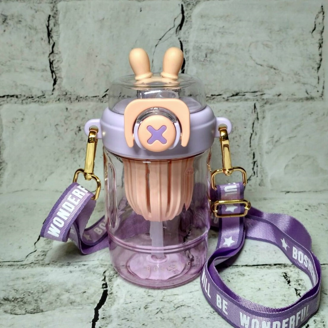 Стакан для води дитячий з трубочкою та ремінцем Bunny 450 мл 12х8 см Бузковий SL-7139-S