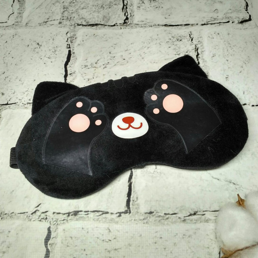 Маска для сну велюрова Котик 19х9 см Чорна 20243-3