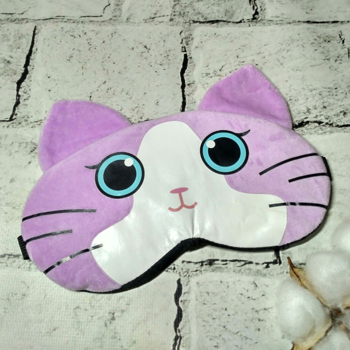 Маска для сну велюрова Котик 20х9 см Бузкова 20245-1